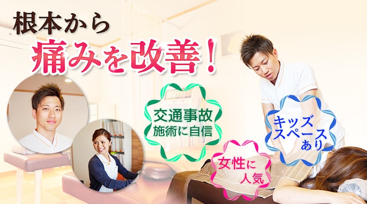 当院では、痛みに対し表面的に施術をして一時的に緩和するだけの施術ではなく、痛みの早期緩和を図りつつも、原因にもしっかりとアプローチして根本的な改善を目指す施術を行っています。